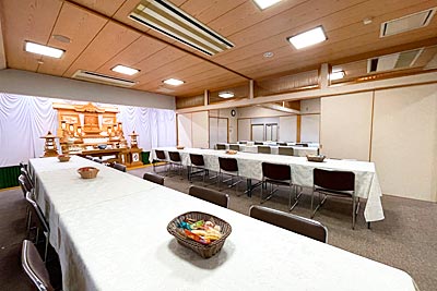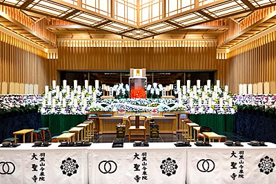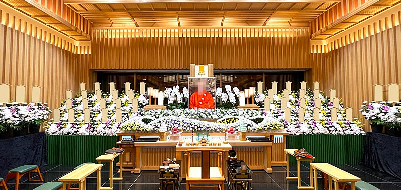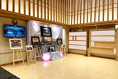 御葬儀前夜の設営を終えました会場の様子をご案内させていただきます。